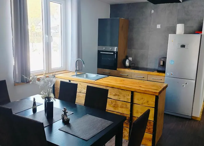 The Szczytno villa includes a mini-kitchen, as well as an outdoor dining area for self-catering. There is also an oven and a dishwasher available in the kitchen.